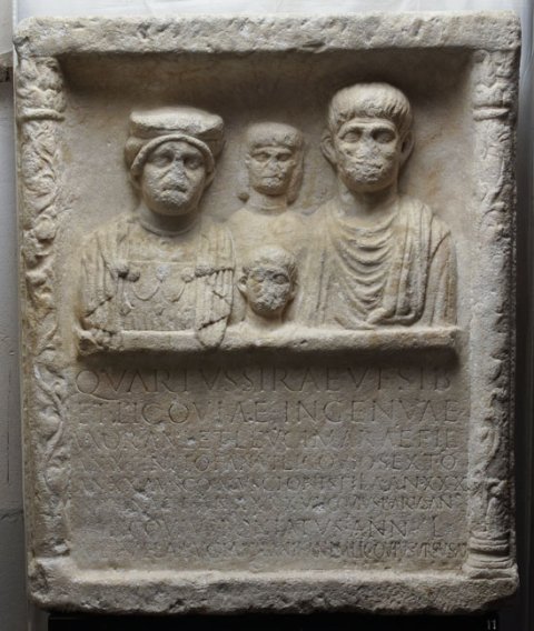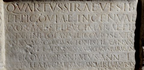 - Quartus Sirae (filius) v(ivus) f(ecit) sib(i) / et Licoviae Ingenuae / uxor(i) an(norum) L et Leucimarae fil(iae) / an(norum) X Finito f(ilio) an(norum) VI Licovio Sexto / an(norum) XX Ausco Muscionis filia an(norum) XXX / Dubnae f(iliae) an(norum) XXXX M(arcus) Licovius Barus an(norum) / M(arcus) Licovius Boniatus ann(orum) L / Vetulla Bugia Urbani f(ilia) an(norum) L M(arcus) Licovius Ursus a(nnorum) XX