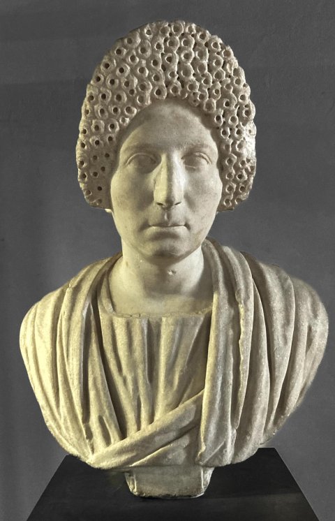 - bekleidete Büste einer Frau mit flavischer Frisur