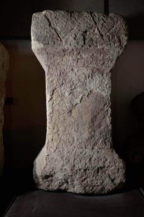 - I(ovi) O(ptimo) M(aximo) Dol(icheno) // P(ublius) Ael(ius) M[a]rc]e]l/linus [b(ene)f(iciarius) co(n)s(ularis)] leg(ionis) / V M(acedonicae) Go[rd(ianae) agens Sa]/[mo cum reg(ione) Ans(amensium?) sub] / [sig(nis) pro sal(ute) sua susuo]/rumq(ue) [omn]ium // v(oto) l(ibens) p(osuit) /[A]rriano et Papo co(n)s(ulibus)