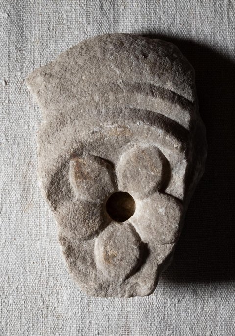 - Rosette in rundem profiliertem Rahmen. In der Mitte Einsatz?