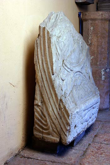 - Fragment, ca. Hälfte der Deckenplatte mit Lagerflächen für Säule u. Pilaster