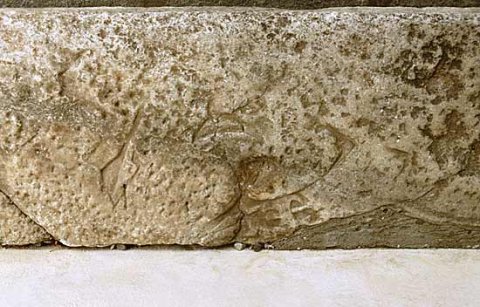 - Fragment einer Ädikula-Seitenwange, zu Lorica umgearbeitet, Relief abgerieben