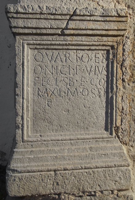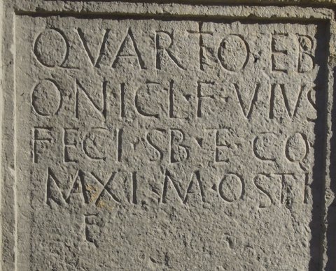 - Quartio Eb/onici f(ilius) vi(v)us / feci(t) s(i)b(i) et co(niugi) / Maxima(e) Osti f(iliae)