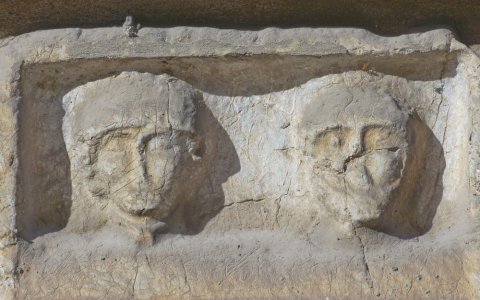 Im Hauptbild in Rechtecknische zwei Köpfe (Ehepaar ?), rechts bärtiger Mann.