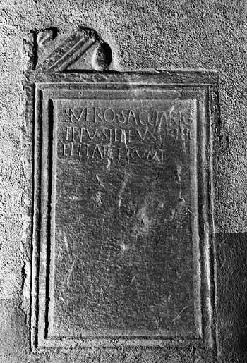 - Severo Sacciari (filio) o(bito) / et Pusill(a)e uxori ei(us) o(bitae) / filia f(e)cerunt (!)