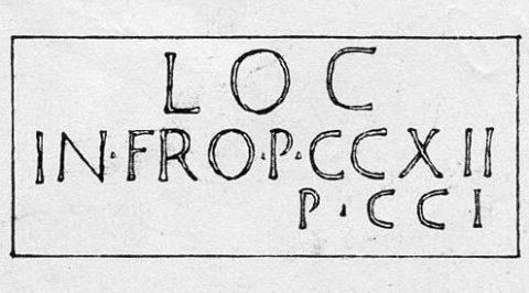 - Loc(us) [mon(umenti)] / in fro(nte) p(edes) CCXII [in a(gro)] / p(edes) CCI