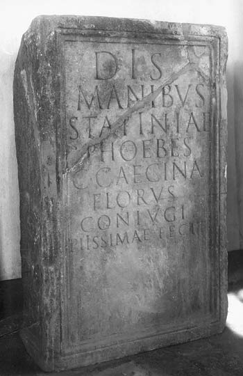 - Dis / Manibus / Statiniae / Phoebes / C(aius) Caecina / Florus / coniugi / piissimae fecit