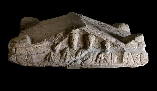 3773 Aschenkistendeckel mit Grabrelief einer Familie