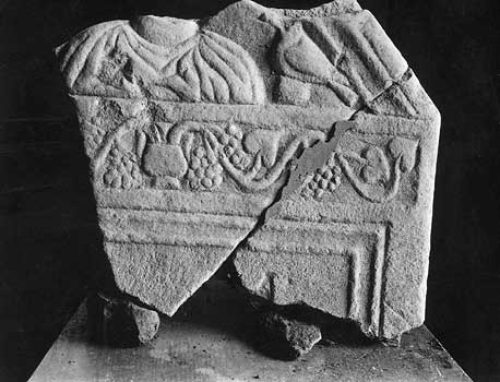 Im Zwischenfries Gefäß mit Weinranken. - Inschrift