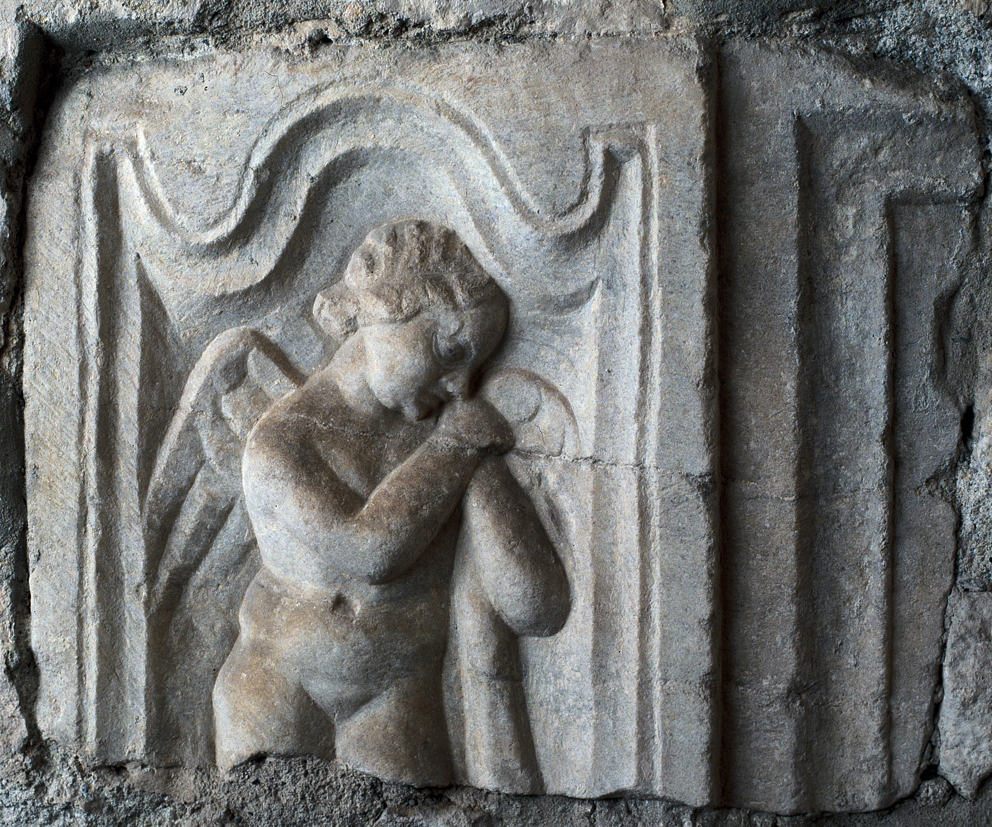 3776 Relieffragment mit Trauergenius