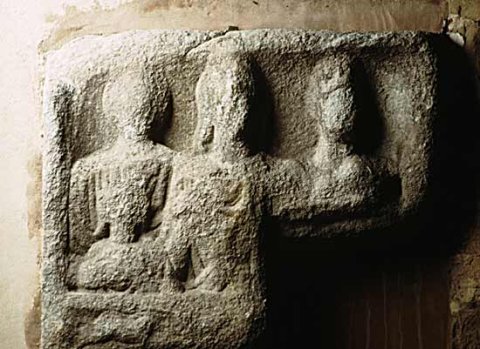 - gr. Stück der rechten Seite herausgeschnitten, Inschr. zerstört, Relief abgeschlagen