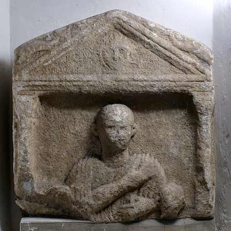 3778 Porträtstele eines Mannes mit zwei Kindern
