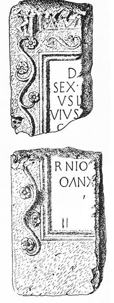 - D(is) [M(anibus)] / Sex(tus) [Caeserni]/us(?) L(uci) [---] / viv(u)s [fec(it) sibi et] / C[---] / [--- Caese]/rnio(?) [---] / o(bito) an(norum) X[---