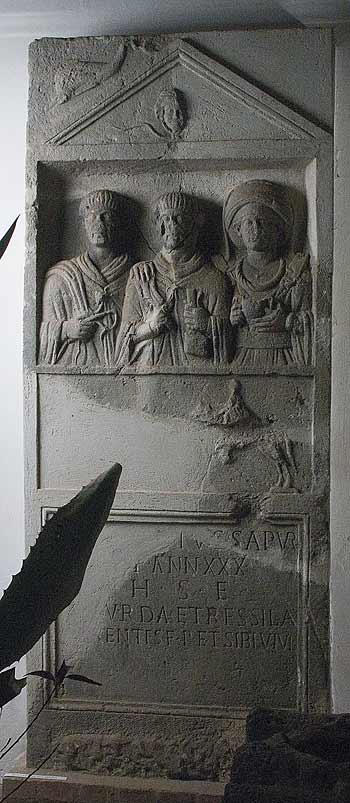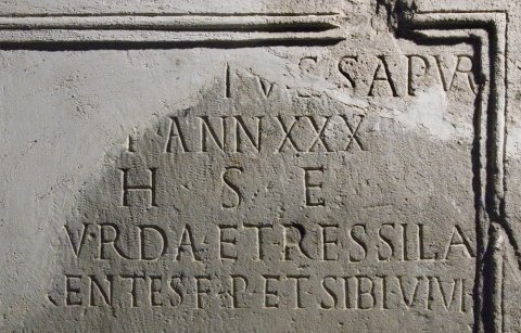 - R[esa]tus Sapur/d[ae] f(ilius) ann(orum) XXX / h(ic) s(itus) e(st) / Sa[p]urda et Ressila / parentes f(ilio) p(ientissimo) et sibi vivi