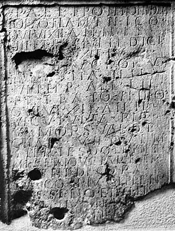- D(is) M(anibus) // P(ublio) Ael(io) Erontoni (=Frontoni) dec(urioni) / col(oniae) Aq(uincensium) flaminico / qui vixit annis / LIII et P(ublio) Aelio Vindici / fi[lio] qui vixit an[n(is) -]I / <e=I>t [Aelia]e V<i>c<t>or[i]n(a)e / fil(iae) qu(ae) [vi]xit ann(is) / VIII et P(ublio) Ael(io) In/petrato filio / qui vixit ann(is) VI cui vita par/va mors valde / citata fuit quem / flentes doleunt / miserique paren/tes Sept(imia) Decora/ta coniugi pien/[ti]ssimo et fili(i)s / [co]mmunibu[s et] / Ael[ii I]npetra[tus et] / [De]coratus [---] / [---