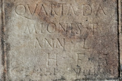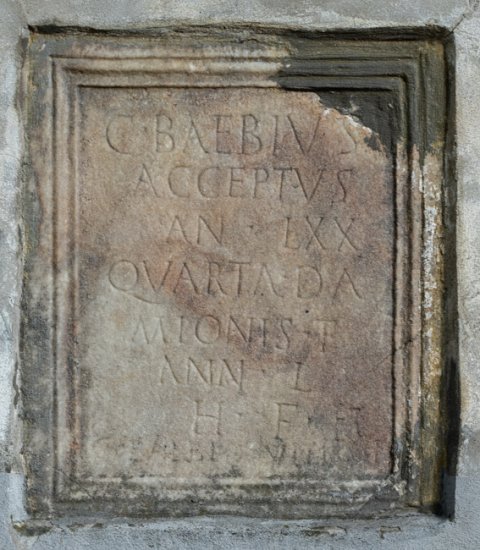 - C(aius) Baebius / Acceptus / an(norum) LXX / Quarta Da/mionis f(ilia) / ann(orum) L / h(eres) f(ecit) et / C(aio) Baebio Vitellio f(ilio)