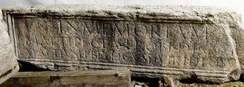 In memoriam / L(ucii) Matti(i) P(ublii) f(ilii) Cla(udia) Probi dec(urionis) Ce[l(eiensium) ] / P(ublius) Mattius L(ucii) f(ilius) Bellicus II vir i(ure) d(icundo) posu[it ]
