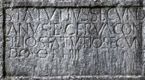 - D(is) M(anibus) // Statutius Secund/ianus et Cerva con(iux) / filio Statutio Secun/do o(bito) an(norum) IIII