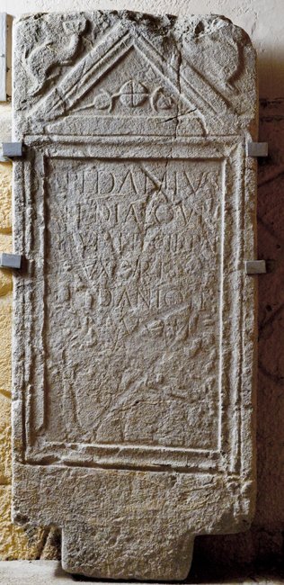 - L(ucius) Pedanius / Lu(ci) f(ilius) Dialo v(ivus) f(ecit) s(ibi) / et (H)elviae T(iti) f(iliae) Cirpae / uxori / L(ucio) Pedanio L(uci) f(ilio) Optato fil(io)