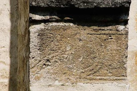 - an einem Strebepfeiler auf der Südseite der Dorfkirche St. Quirinus (im Friedhof)