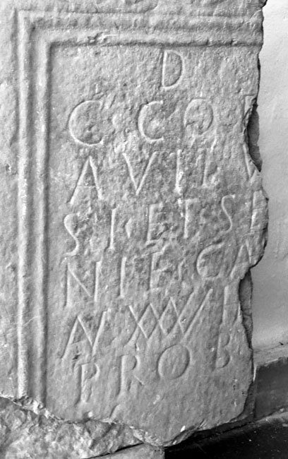 - D(is) [M(anibus)] / C(aius) Cor[nelius] / Avitu[s v(ivus) fec(it)] / si(bi) et Se[cundi]/ni(a)e(?) Cas[--- ] / an(norum) XXXV h(ic) [s(ita) e(st)] / Probu[s fil(ius) an(norum)] / V