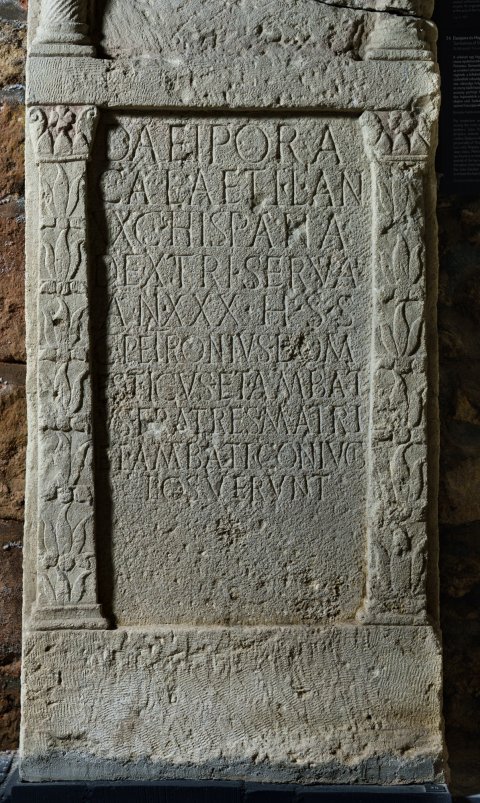 - Daeipora / Calaeti l(iberta) an(norum) / XXC Hispana / Dextri serva / an(norum) XXX h(ic) s(itae) s(unt) / Petronius Domesticus et Ambat/us fratres matri / et Ambati coniugi / posuerunt