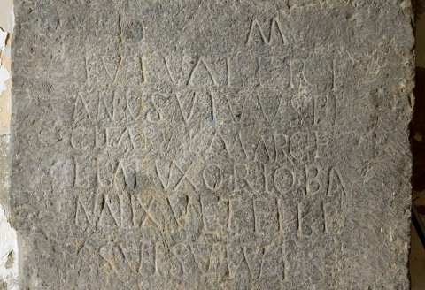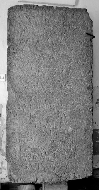 - D(is) M(anibus) / Iul(ius) Valeri/anus vivus fe/cit Apul(eiae) Marce/llae uxori ob(itae) a/nn(orum) LXV et fili(i)/s suis vivis