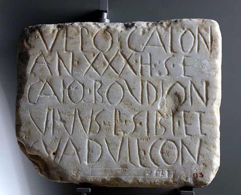 - Vepo Caioni(s) (filius) / an(norum) XXX h(ic) s(itus) e(st) / Caio Boudion(is filius) / vivus f(ecit) sibi et / Suadull(ae) con(iugi)