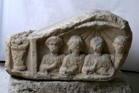 4255 Aschenkistendeckel mit Grabrelief einer Familie