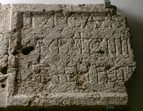 - Imp(erator) Caes(ar) [M(arcus) Aur(elius) Commodus Aug(ustus) Pius Sarm(aticus) Germ(anicus)] / max(imus) Brit(annicus) co(n)s(ul) IIII [--- coh(ortis) pri]mae He<m=N>(esenorum) fecit [---]
