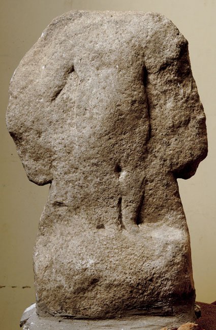 - stark verwittert, Kopf fehlt, im Boden Dübelloch