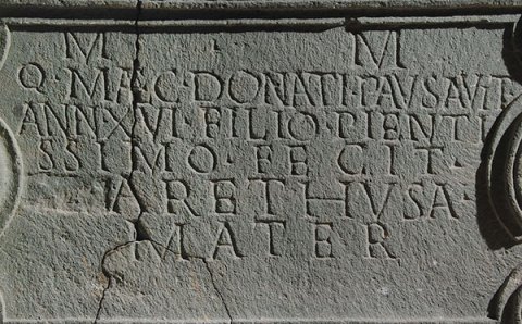 - MM(anibus) / Q(uinti) Maec(i) Donati pausavit / ann(os) XVI filio pienti/ssimo fecit / [[---]] Arethusa / mater