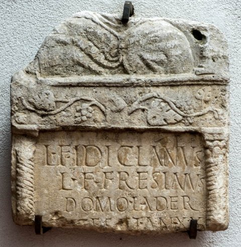 - L(ucius) Fidiclanius / L(ucii) f(ilius) Fresianus / domo Iader(e) / [de]cessit an(norum) XX / [ ---