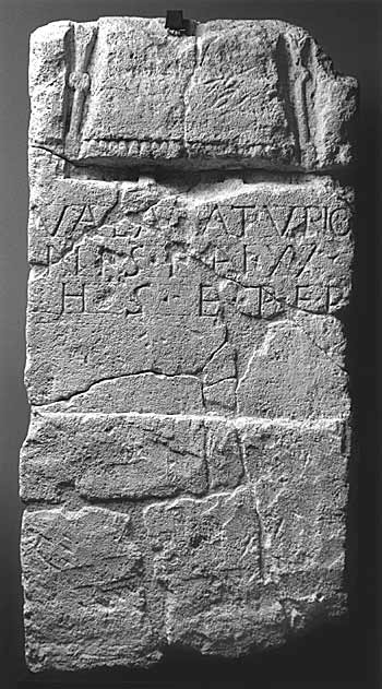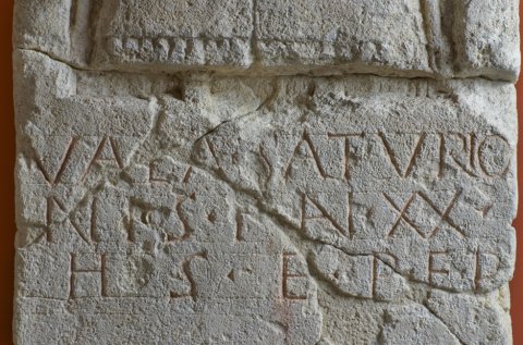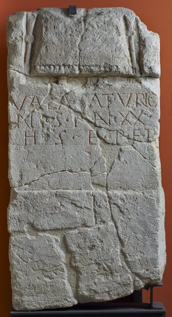 - Vala Saturio/nis f(ilia) an(norum) XX / h(ic) s(ita) e(st) p(ater) f(iliae) p(osuit)