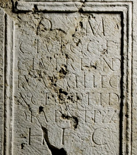 - D(is) M(anibus) / C(aio) Iulio C(ai) f(ilio) / Cl(audia) Verecund(o) / Iu(v)a[v(o)] mil(iti) leg(ionis) / X ge[m(inae)] p(iae) fid(elis) / |(centuria) Paet[i] stip(endiorum) XX / h(eres) f(aciendum) c(uravit)