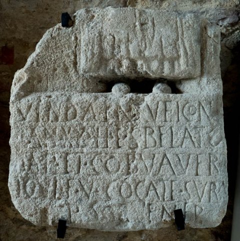 - Vindain(a) Veicon(is) / f(ilia) an(norum) XX h(ic) e(st) s(ita) Belato/mar(us) et Cobua Ver/ciovi f(ilii) v(ivi) Cocate Sura / p(osuerunt) sor(ori) e(t) nep(ti)