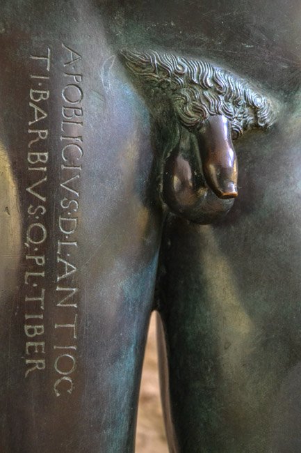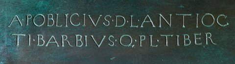 - Auf dem Oberschenkel: A(ulus) Poblicius D(ecimi) l(ibertus) Antioc(hus) / Ti(berius) Barbius Q(uinti) P(ubli) l(ibertus) Tiber(erianus?) // Auf dem Schild : M(arcus) Gallicinus Vindili f(ilius) L(ucius) Barb(ius) L(uci) l(ibertus) Philotaerus / pr(ocurator) / Craxsantus Barbi P(ubli) s(ervus)