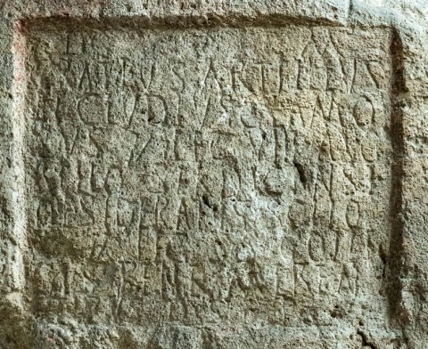 - D(is) M(anibus) / Gratius Artilleus / Clodius Glamosus / ||(centuriones) leg(ionis) VIII Aug(ustae) / bello Serdicensi / desideratis scho/la ||(centurionum) leg(ionis) s(upra) s(criptae) colle/gis bene meren/tibus d(e) s(e)