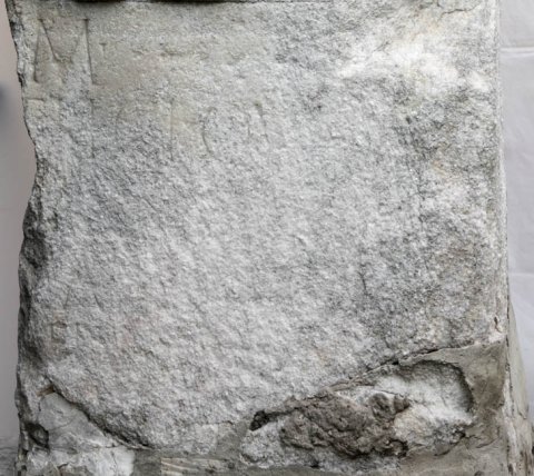 - linke Hälfte abgebr., rechts und unten abgeschlagen