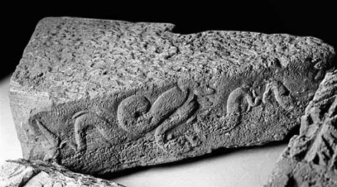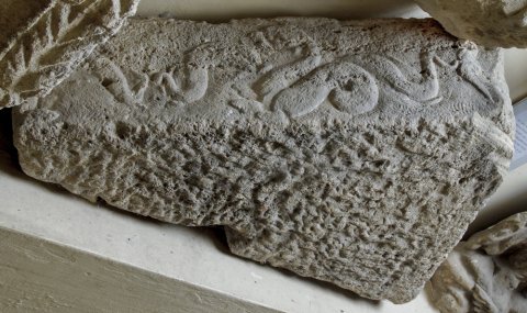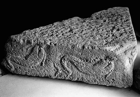 - Reliefs an zwei aneinanderstoßenden Seiten. Meerwesen: Seedrachen, Delphine