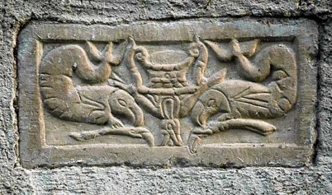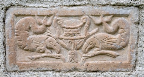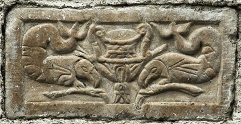 4376 Relief mit Krater zwischen Meerwesen
