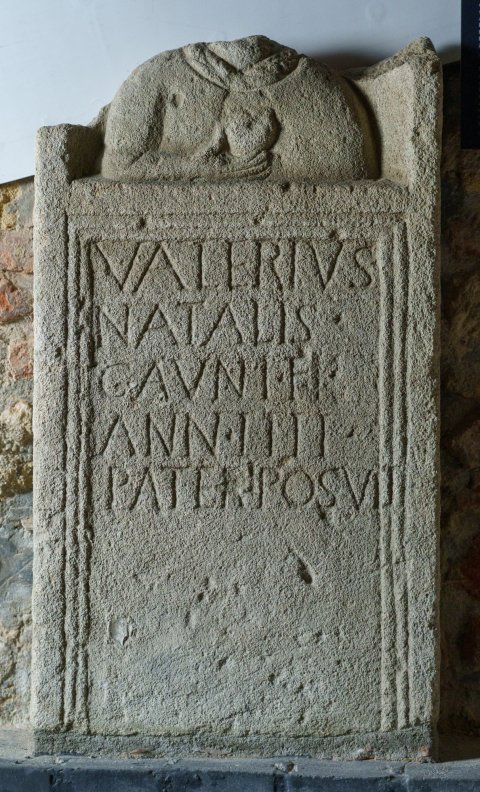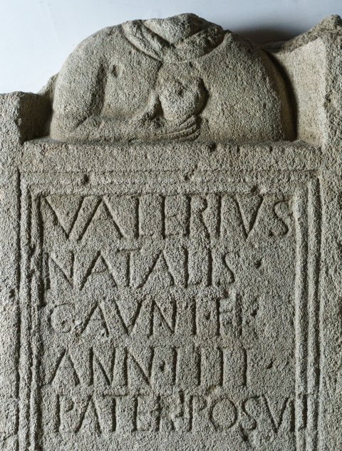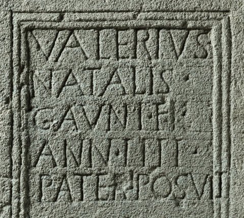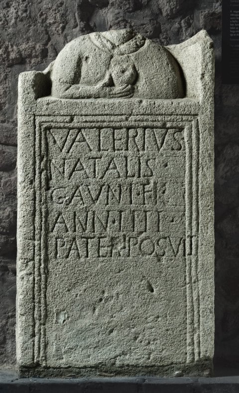 - Valerius / Natalis / Gauni f(ilius) / ann(orum) IIII / pater posuit