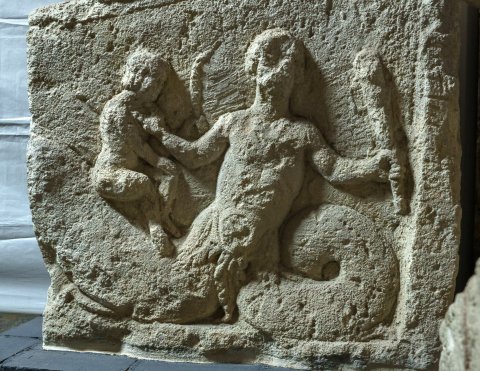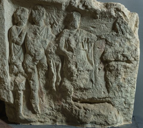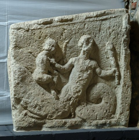 4401 Giebelfragment (?) mit Reliefs auf beiden Seiten