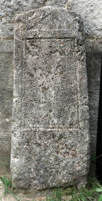 - eingeschriebener Giebel mit Seitenakroteren. gerahmtes Schriftfeld