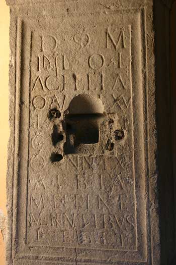 D(is) M(anibus) / L(ucio) Lol(lio) / Achillae / o(bito) ann(orum) LXV / et Agiliae / Gallae / o(bitae) ann(orum) LXX / Albia / Melitin(a)e / merentibus / fecit - Kommentar