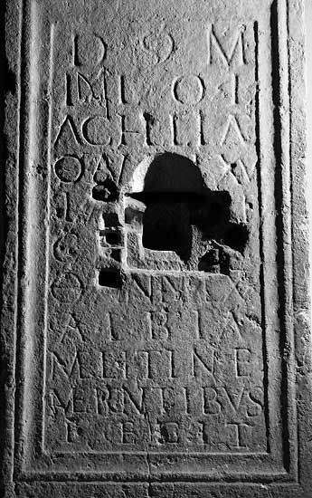 - D(is) M(anibus) / L(ucio) Lol(lio) / Achillae / o(bito) ann(orum) LXV / et A[---]e / G[alla?]e / o(bitae) ann(orum) LXX / Albia / Melitine / merentibus / fecit