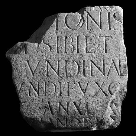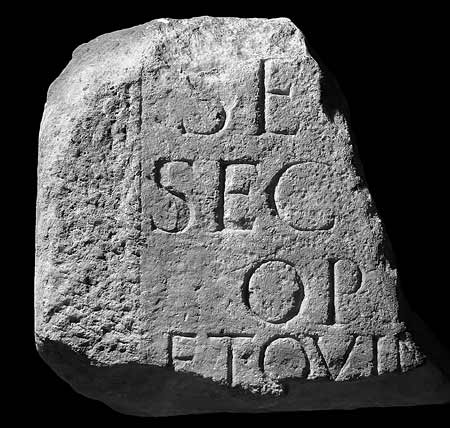 - ---] / [---] fil(io?) an(norum) XI[I] / [--- Quint]ionis [f(ilius)] / [vivus feci]t sibi et / Secundinae / Secundi f(iliae) uxo[ri] / opt(imae) an(norum) XL / et Quintiano f[il(io) an(norum) [---