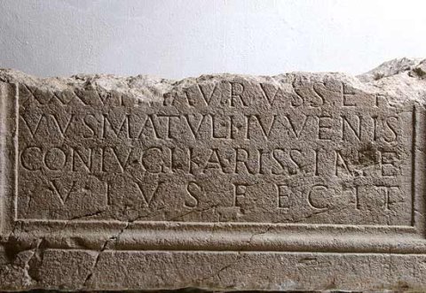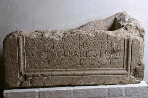 - ---] / [--- obitae annorum] / XXXVI Maurus ser/vus Matuali Iuvenis / coniugi karissim(a)e / vivus fecit