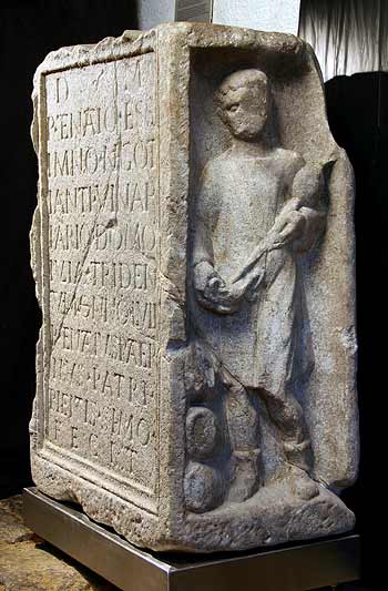 - D(is) M(anibus) / P(ublio) Tenatio Ess/imno negot/ianti vinar/iario domo / Iulia Triden/tum(!) (obito) anno(rum) LVII / P(ublius) Tenatius Pater/nus patri / pientissimo / fecit