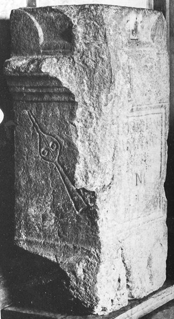 - [D(is) M(anibus)] // [Clod(io) Mariano] / [frumentario] / [l]eg(ionis) VII [gem(inae)] / [L]uca[nius] / Lauren[tius] / [f]aceundum (!) [cur(avit)]
